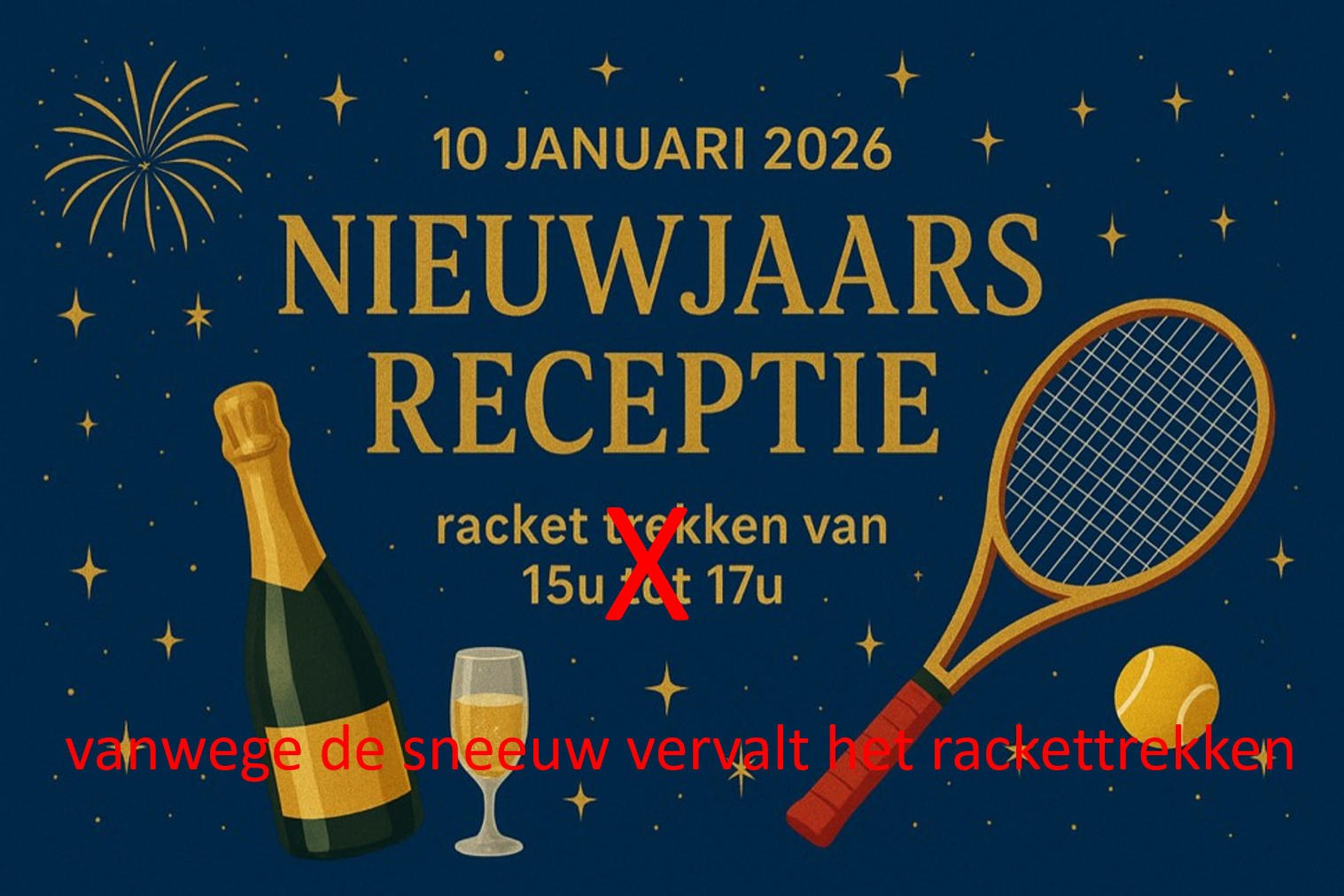 Nieuwjaarsreceptie 10 januari, géén racket trekken
