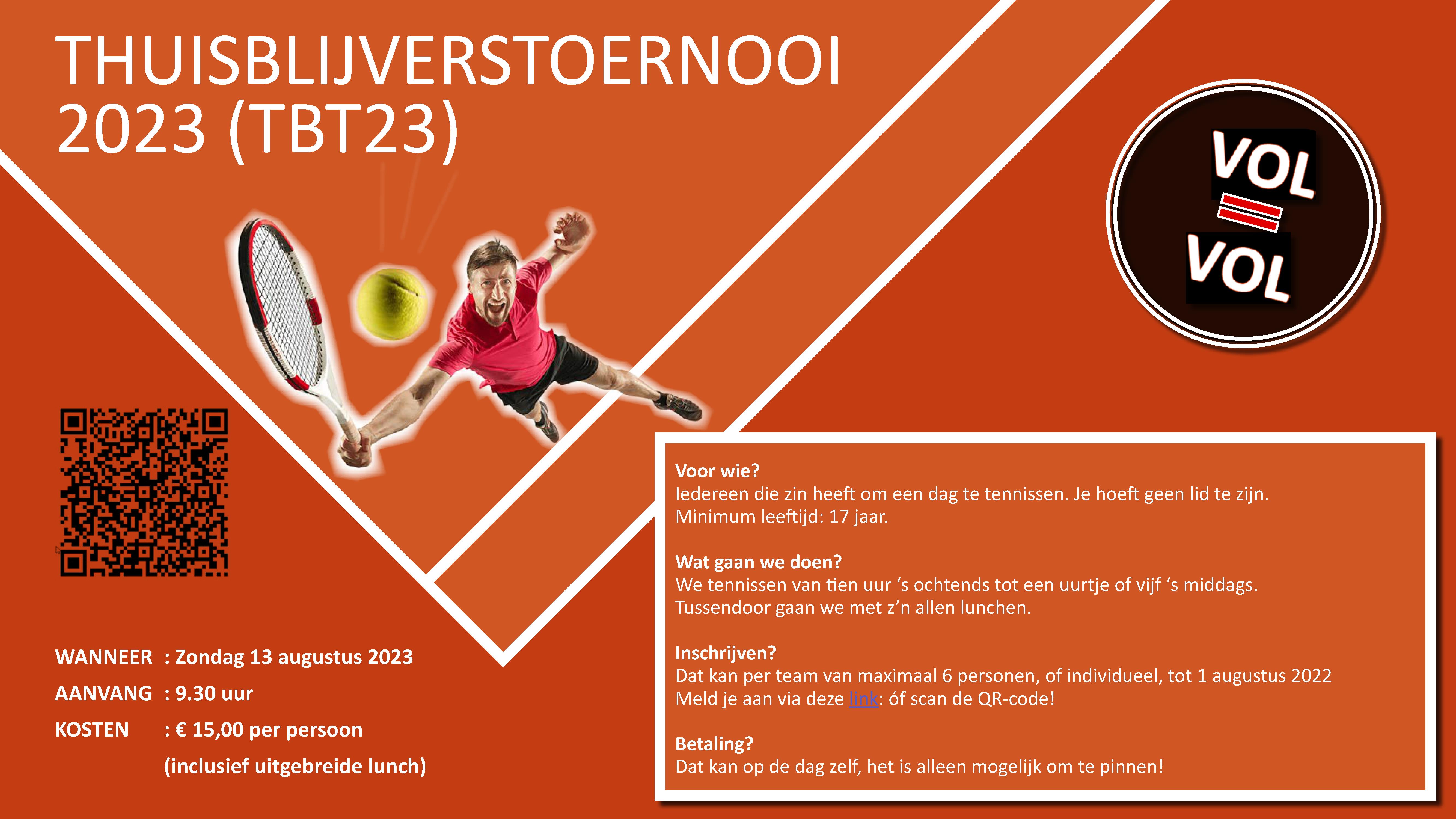 Het thuisblijvers toernooi 2023 staat weer voor de deur. Schrijf je nu in als individu of als team van max 6 personen. Voor alle informatie zie de poster en om in te schrijven klik hier of gebruik de QR code om direct naar het inschrijfformulier te gaan. Het belooft wéér een feestje te worden!