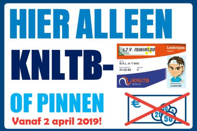 Vanaf 2 april hebben we onze nieuwe kassa in gebruik en is het niet meer mogelijk om contant te betalen. Er kan met met PIN of met de KNLTB pas (bv. voor de jeugd die nog geen pinpas heeft) worden betaald. Op de KNLTB pas kan eenvoudig bij de kassa of thuis via PrePay het saldo worden opgewaardeerd.
